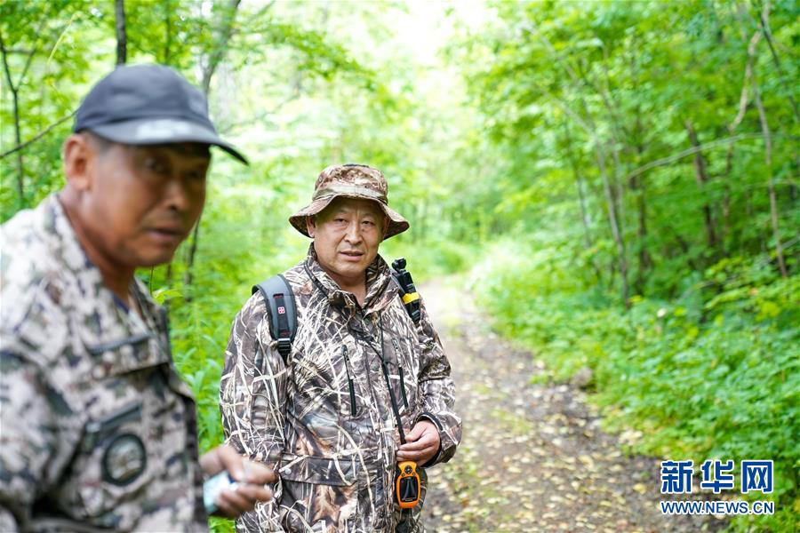 董紅雨在迎春林業(yè)局有限公司施業(yè)區(qū)內(nèi)進(jìn)行野生東北虎信息搜集和巡護(hù)工作(7月8日攝)。新華社記者馬曉成攝
