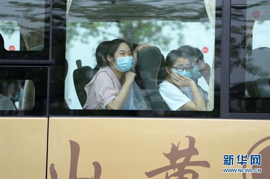 7月9日,考生乘坐大巴車抵達(dá)歙縣第二中學(xué)考點(diǎn)。受強(qiáng)降雨影響,2020年高考安徽歙縣考區(qū)7月7日未能如期開考,經(jīng)研究并報(bào)教育部批準(zhǔn),歙縣考區(qū)于9日啟用2020年普通高等學(xué)校招生全國(guó)統(tǒng)一考試語文、數(shù)學(xué)(文、理)科目副題進(jìn)行考試。新華社記者黃博涵攝