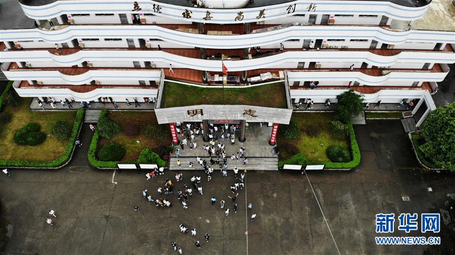 7月9日,考生進(jìn)入歙縣第二中學(xué)考點(diǎn)(無人機(jī)照片)。受強(qiáng)降雨影響,2020年高考安徽歙縣考區(qū)7月7日未能如期開考,經(jīng)研究并報(bào)教育部批準(zhǔn),歙縣考區(qū)于9日啟用2020年普通高等學(xué)校招生全國統(tǒng)一考試語文、數(shù)學(xué)(文、理)科目副題進(jìn)行考試。新華社記者黃博涵攝