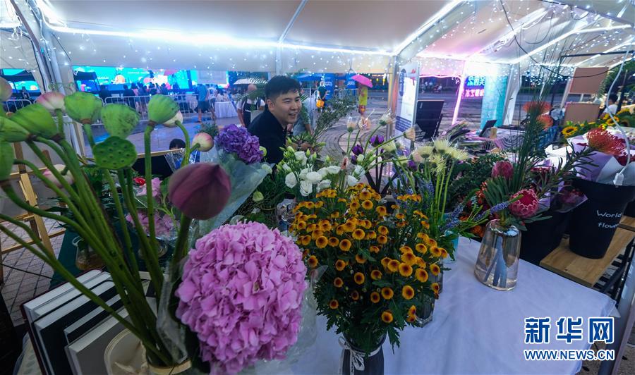 7月10日,工作人員在嘉年華現(xiàn)場插花攤位忙碌。新華社記者徐昱攝。