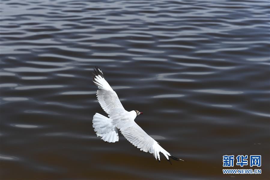 7月10日,一只棕頭鷗從青海湖湖面上飛過。盛夏時節(jié),被譽為“中國最美湖泊”的青海湖畔景色宜人,藍天、白云、湖水與草原組成一幅壯美的畫卷。新華社記者 張宏祥 攝