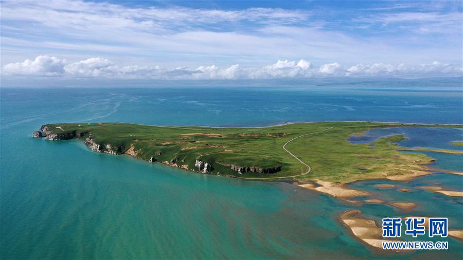 7月10日拍攝的青海湖風(fēng)光(無人機照片)。盛夏時節(jié),被譽為“中國最美湖泊”的青海湖畔景色宜人,藍天、白云、湖水與草原組成一幅壯美的畫卷。新華社記者 張宏祥 攝