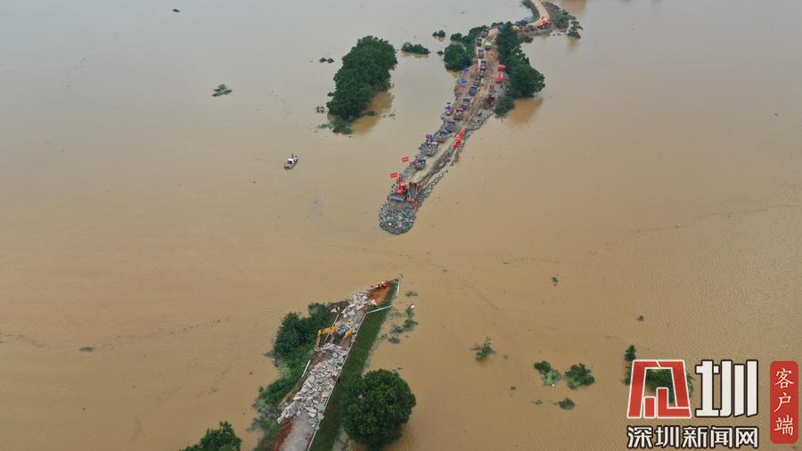 2020年7月13日,江西鄱陽縣問桂道圩,決口封堵進入最后攻堅階段。受持續(xù)強降雨影響,7月8日20時35分,位于江西省上饒市鄱陽縣鄱陽鎮(zhèn)的問桂道圩堤出現(xiàn)漫決險情,導致良田、村莊受淹,受淹村民已安全轉移。連日來,中國安能第二工程局在此處對問桂道決口圩堤進占填筑,目前進入最后攻堅階段。