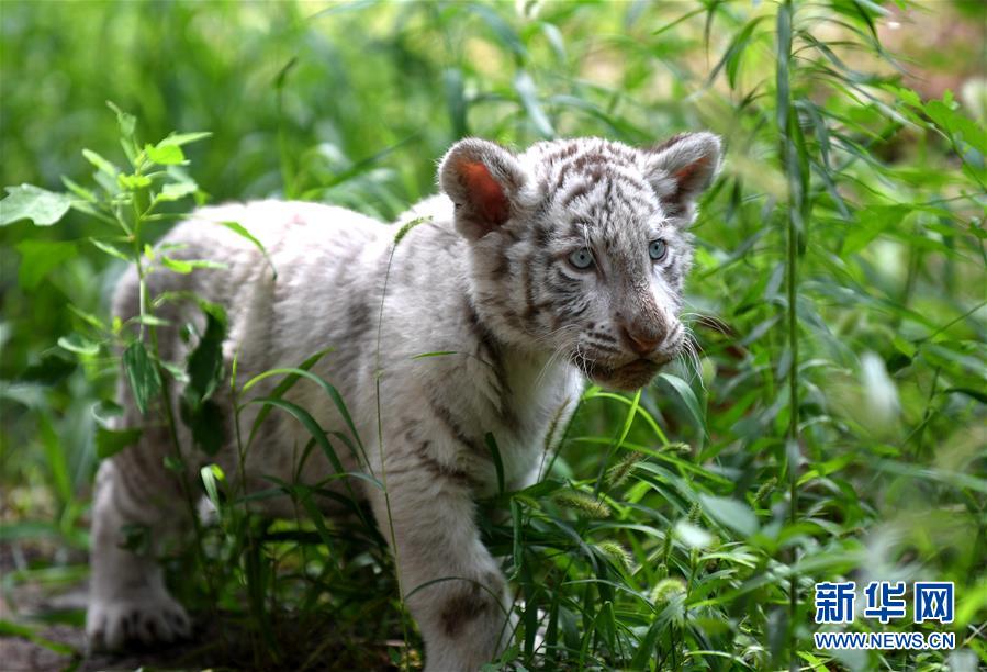 7月13日,“妞妞”在動物園的院子里散步。河北石家莊市動物園的孟加拉白虎寶寶“妞妞”只有3個月大,由于虎媽媽經(jīng)驗不足,“妞妞”一出生便由動物園工作人員按科學方法人工飼養(yǎng)。目前,在飼養(yǎng)員的精心照料下,“妞妞”正在茁壯成長。新華社記者 王曉 攝