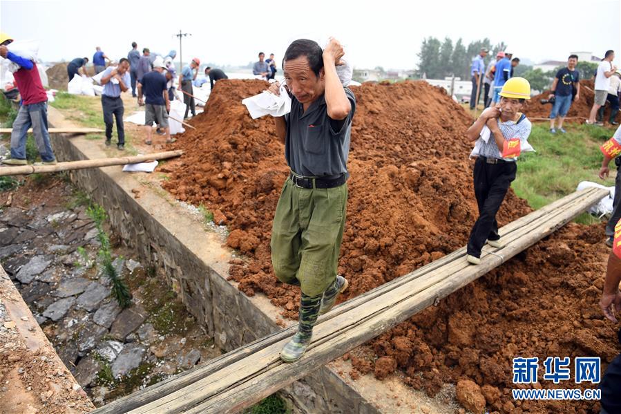 7月14日,當(dāng)?shù)卮迕裢簧习徇\(yùn)砂石袋。近日,受洪水影響,安徽省望江縣華陽(yáng)鎮(zhèn)境內(nèi)的江調(diào)圩內(nèi)部道路漫水,搶險(xiǎn)車輛無法進(jìn)入。當(dāng)?shù)胤姥床块T組織船只裝載砂石袋等防汛物資,運(yùn)往圩堤保防汛。新華社記者 劉軍喜 攝