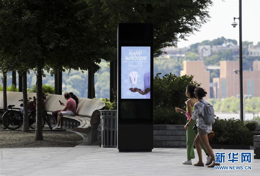 7月14日,在美國(guó)紐約一家尚未恢復(fù)店內(nèi)購(gòu)物的購(gòu)物中心外,電子屏介紹正確洗手的方式。美國(guó)約翰斯·霍普金斯大學(xué):截至北京時(shí)間15日6時(shí)34分,全球新冠確診病例達(dá)13258016例,死亡病例為576752例。美國(guó)是全球疫情最嚴(yán)重的國(guó)家,確診病例達(dá)3416222例,死亡病例為136319例。新華社記者 王迎 攝