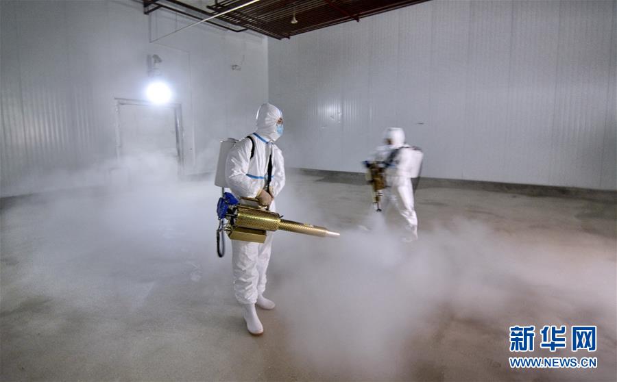 7月14日,北京二商肉類食品集團有限公司員工對肉類冷藏庫房進行全方位消毒。北京二商肉類食品集團有限公司是保障北京肉類市場供應(yīng)的主要企業(yè)之一。新冠肺炎疫情以來,企業(yè)嚴格實施北京市、農(nóng)業(yè)農(nóng)村部和中國肉類協(xié)會的防疫要求,對進入廠區(qū)的人員、車輛以及原料采購、屠宰分割、產(chǎn)品加工、貯藏運輸、廢棄物收集及污水處理等生產(chǎn)環(huán)節(jié)嚴格防疫,強調(diào)源頭把關(guān)徹底消毒。目前,集團公司下屬多家生豬屠宰加工基地正常運營,保質(zhì)保量供應(yīng)北京市場需求。新華社記者 李欣 攝