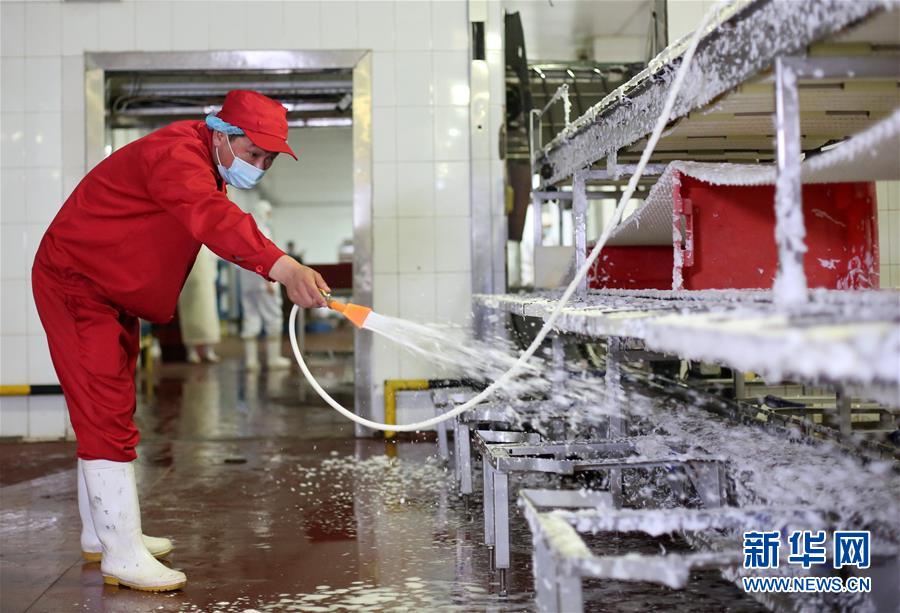 7月14日,北京二商肉類食品集團(tuán)有限公司員工對肉類分割流水線進(jìn)行清洗消毒。北京二商肉類食品集團(tuán)有限公司是保障北京肉類市場供應(yīng)的主要企業(yè)之一。新冠肺炎疫情以來,企業(yè)嚴(yán)格實施北京市、農(nóng)業(yè)農(nóng)村部和中國肉類協(xié)會的防疫要求,對進(jìn)入廠區(qū)的人員、車輛以及原料采購、屠宰分割、產(chǎn)品加工、貯藏運輸、廢棄物收集及污水處理等生產(chǎn)環(huán)節(jié)嚴(yán)格防疫,強調(diào)源頭把關(guān)徹底消毒。目前,集團(tuán)公司下屬多家生豬屠宰加工基地正常運營,保質(zhì)保量供應(yīng)北京市場需求。新華社記者 李欣 攝