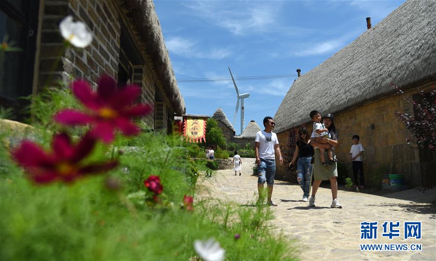 7月17日,游客在以傳統(tǒng)海草民居聞名的山東榮成東楮島村觀光。近年來,山東省榮成市重點發(fā)展特色海洋旅游產(chǎn)業(yè),打造眾多國家級海洋牧場,保留修復傳統(tǒng)海草民居,吸引游客前來觀光體驗。如今特色海洋旅游已逐漸成為榮成經(jīng)濟發(fā)展新的增長點。新華社記者王凱攝