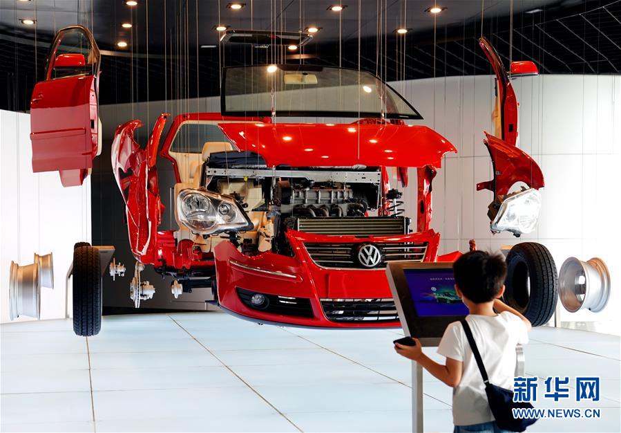 7月19日,一名小朋友在參觀了解汽車的部件組成。暑假期間,不少市民和游客來到上海汽車博物館參觀,感受汽車文化魅力。新華社記者劉穎攝