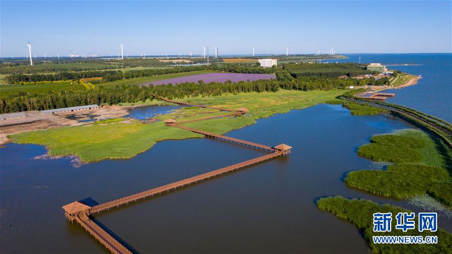 這是查干湖花海景區(qū)(7月20日攝,無人機照片)。新華社記者張楠攝