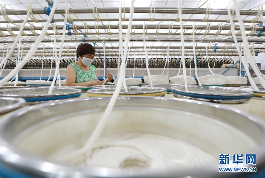 7月20日,工人在灤南縣長凝鎮(zhèn)的一家紡織廠生產(chǎn)車間里工作。近年來,河北省灤南縣大力發(fā)展村邊民營企業(yè),引導(dǎo)企業(yè)在鄉(xiāng)鎮(zhèn)村邊建廠,帶動(dòng)當(dāng)?shù)?萬多名農(nóng)村群眾在村邊就近就業(yè),實(shí)現(xiàn)穩(wěn)步增收。新華社記者楊世堯攝