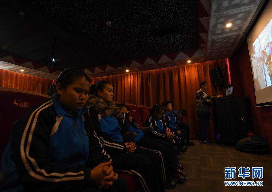 2019年12月3日,視障孩子在聽蘇日娜解說電影。當日,家住內蒙古呼和浩特市的蘇日娜來到內蒙古圖書館內的殘障人圖書館,為視障人士舉辦詩歌朗誦會并解說電影。新華社記者彭源攝