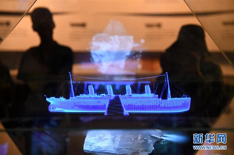 2019年8月28日,參觀者在電影博物館內觀看“泰坦尼克號”數(shù)字模型全息演示。當日,2019青島國際影視博覽會舉行青島電影博物館探館活動。新華社記者李紫恒攝