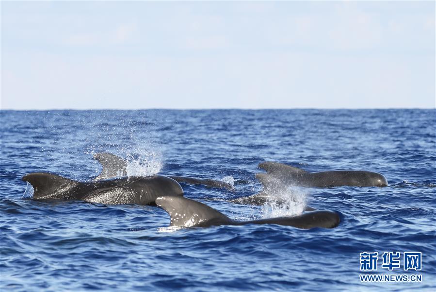 這是7月20日在南海某海域拍攝的短肢領航鯨。新華社記者張麗蕓攝