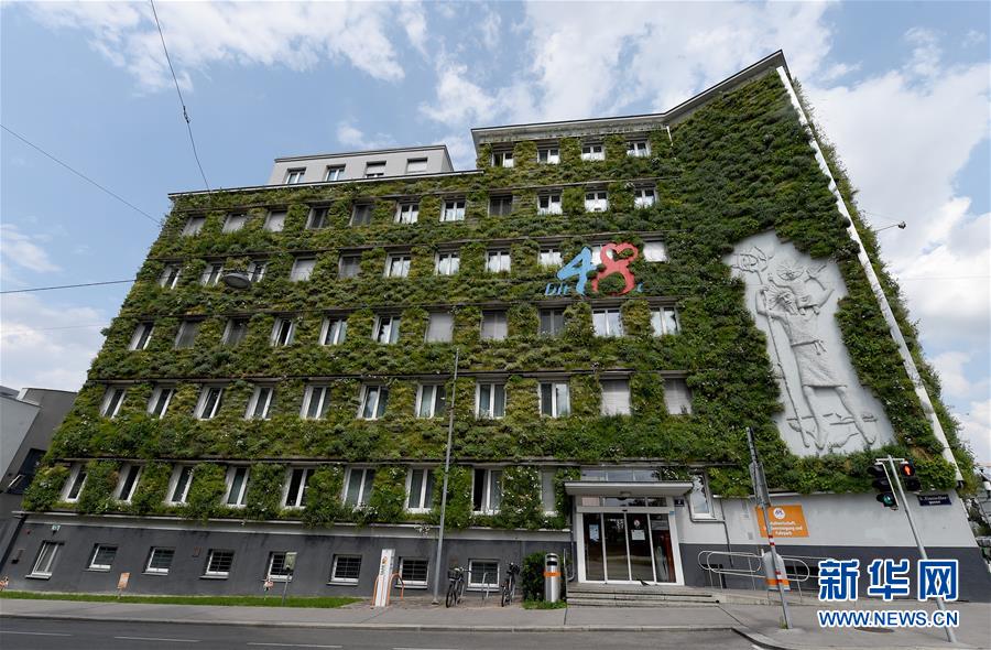 這是7月22日拍攝的奧地利維也納市政管理局廢物處理辦公總部(MA48)外部一隅。奧地利首都維也納的市政管理局廢物處理辦公總部的外墻被種植的綠色植物覆蓋,成為了維也納市建設(shè)綠色城市、節(jié)能減排的“示例樓”。據(jù)介紹,這個(gè)外墻項(xiàng)目建立于2010年,每年在夏季為該建筑自然降溫、增加濕度,從而減少空調(diào)的使用,并可吸收二氧化碳。維也納市政府提倡市內(nèi)建筑建設(shè)綠色外墻,并提供資金支持。新華社記者郭晨攝
