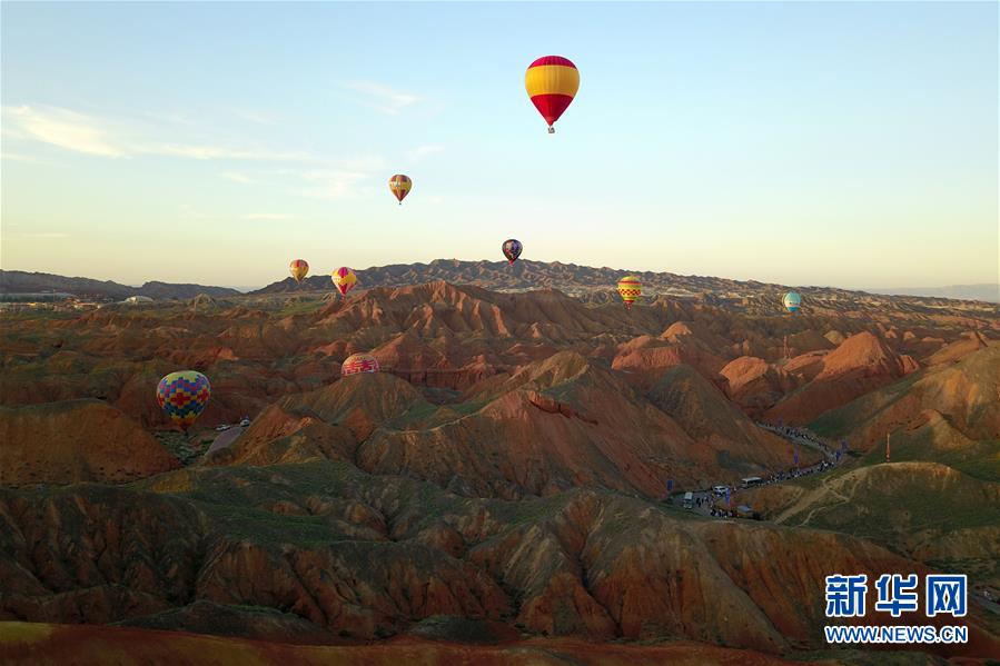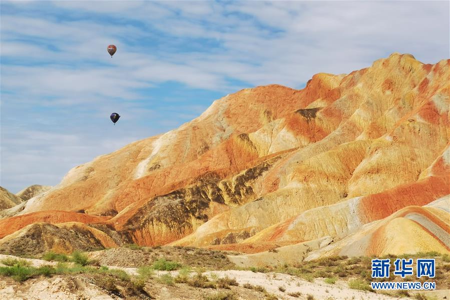 盛夏時(shí)節(jié),地處甘肅省張掖市的張掖世界地質(zhì)公園迎來最美季節(jié)。張掖世界地質(zhì)公園最顯著的特征是有由色彩斑斕的褶皺泥巖和砂巖組成的彩色丘陵,同時(shí)還擁有自然侵蝕在山體上形成的“窗欞狀”“宮殿式”丹霞地貌和古代洋殼殘余九個(gè)泉蛇綠巖套。