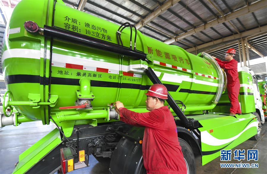 7月27日,河北景縣開發(fā)區(qū)一家新能源汽車制造公司工人對新能源吸污車進行調(diào)試。新華社記者 李曉果 攝