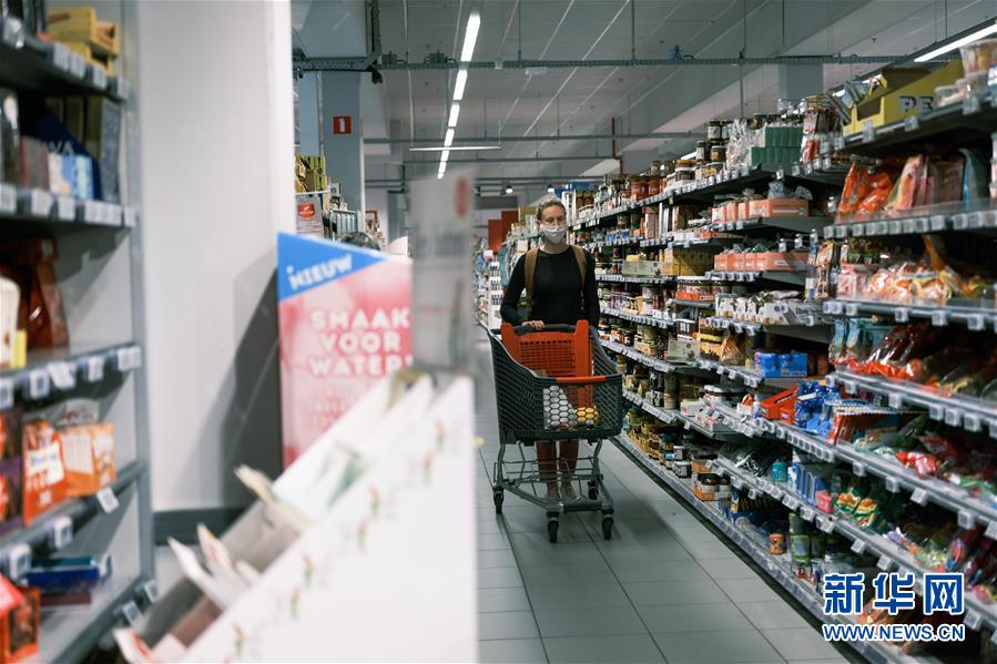 7月29日,一名戴口罩的顧客在比利時(shí)布魯塞爾一家超市采購(gòu)。為應(yīng)對(duì)近期有所抬頭的疫情,比利時(shí)政府決定收緊相關(guān)防控措施,包括從7月29日至8月底一個(gè)家庭能密切接觸的親友人數(shù)將由過(guò)去的最多15人減至5人;大型活動(dòng)的人數(shù)限額減半;婚禮、宴會(huì)等私人聚會(huì)最多不超過(guò)10人等。新華社記者張鋮攝