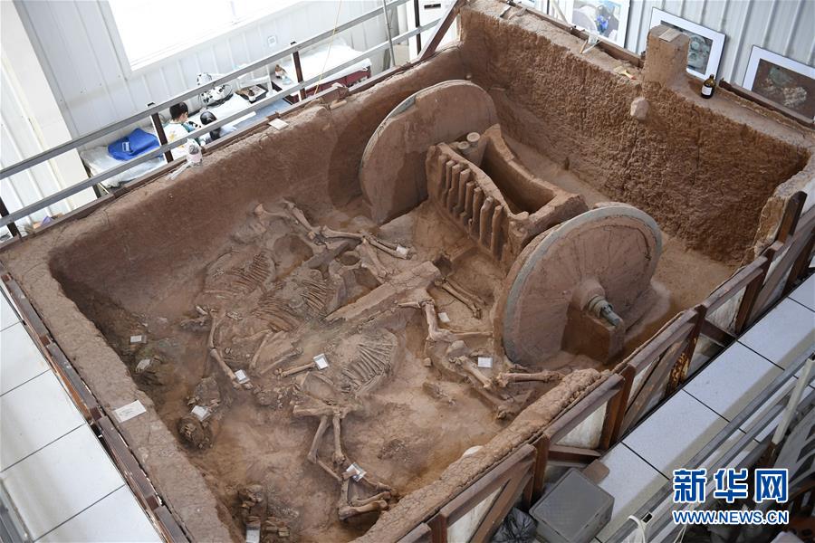 陜西保護(hù)復(fù)原2800年前西周青銅輪牙馬車