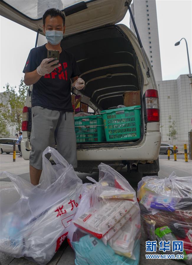 7月30日,在烏魯木齊經濟技術開發(fā)區(qū)(頭屯河區(qū))萬達華府小區(qū),商販打電話告知住戶訂購的商品已經送達。新華社記者趙戈攝