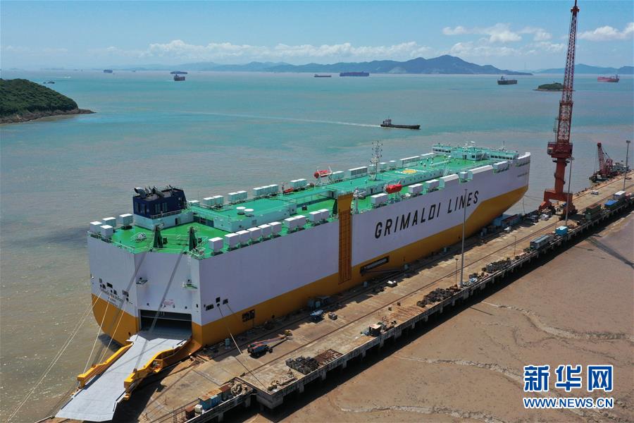 8月1日在位于螞蟻島的揚帆集團東海岸造船廠拍攝的一艘在建的汽車滾裝船,月底即將交付給意大利客戶。新華社記者黃宗治攝