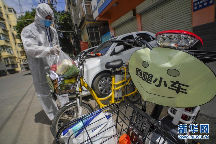 8月3日,在烏魯木齊天山區(qū)西河壩前街社區(qū),社區(qū)工作人員準(zhǔn)備騎上”跑腿小車“為居民送去生活物品。新疆烏魯木齊市天山區(qū)西河壩前街社區(qū)主次干道較多,院落分布分散。新冠肺炎疫情防控期間,社區(qū)整合現(xiàn)有資源,將暫時閑置的自行車、電動車集中起來,貼上“跑腿小車”標(biāo)識,成立便民服務(wù)隊,社區(qū)工作人員通過“跑腿小車”可將居民網(wǎng)絡(luò)定制的“菜袋子”“藥盒子”快速送達(dá),給居民帶來方便。新華社記者趙戈攝