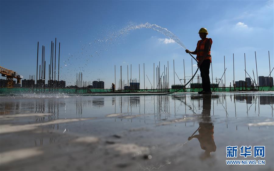 8月3日,工人在長(zhǎng)江文創(chuàng)產(chǎn)業(yè)園項(xiàng)目工地工作平面澆水降溫。進(jìn)入8月,武漢迎來持續(xù)高溫天氣。在湖北廣電傳媒基地工程的工地上,中建三局總承包公司1500多名工人持續(xù)奮戰(zhàn),力保工程進(jìn)度。該工程是我國(guó)中部地區(qū)首個(gè)國(guó)家級(jí)廣播影視媒體基地,由湖北廣電傳媒大廈項(xiàng)目、長(zhǎng)江文創(chuàng)產(chǎn)業(yè)園項(xiàng)目、廣電生活配套項(xiàng)目三大板塊組成,總建設(shè)規(guī)模130萬(wàn)平方米。自今年3月25日獲批正式復(fù)工以來,承建方克服困難,把因疫情影響耽誤的工期趕了回來,預(yù)計(jì)將按原計(jì)劃完成建設(shè)任務(wù)。新華社記者程敏攝