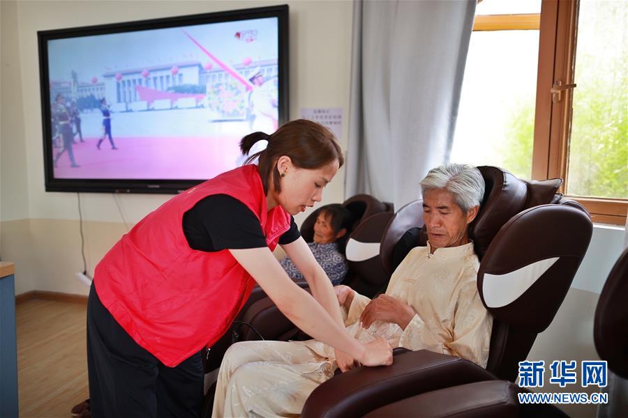 老人在柏楊林易地扶貧搬遷安置點(diǎn)長幼日間托養(yǎng)照料中心內(nèi)進(jìn)行按摩放松(8月3日攝)。貴州省畢節(jié)市七星關(guān)區(qū)柏楊林易地扶貧搬遷安置點(diǎn)是畢節(jié)市最大的易地扶貧搬遷安置點(diǎn),總面積約1.1平方公里,從2017年開始至今,共有34個(gè)鄉(xiāng)鎮(zhèn)6372戶29001人安置到位。如今,安置點(diǎn)內(nèi)教育、醫(yī)療、就業(yè)扶貧車間、長幼日間托養(yǎng)照料中心等設(shè)施齊全,搬遷群眾在這里過上了安居樂業(yè)的幸福生活。新華社記者劉續(xù)攝