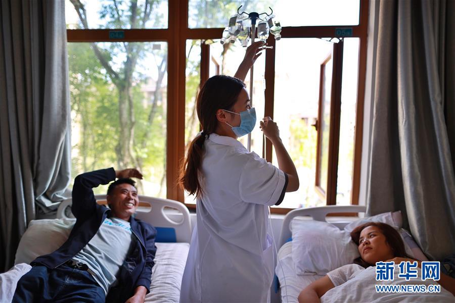 搬遷群眾在柏楊林易地扶貧搬遷安置點(diǎn)衛(wèi)生院內(nèi)治療(8月3日攝)。貴州省畢節(jié)市七星關(guān)區(qū)柏楊林易地扶貧搬遷安置點(diǎn)是畢節(jié)市最大的易地扶貧搬遷安置點(diǎn),總面積約1.1平方公里,從2017年開始至今,共有34個(gè)鄉(xiāng)鎮(zhèn)6372戶29001人安置到位。如今,安置點(diǎn)內(nèi)教育、醫(yī)療、就業(yè)扶貧車間、長幼日間托養(yǎng)照料中心等設(shè)施齊全,搬遷群眾在這里過上了安居樂業(yè)的幸福生活。新華社記者劉續(xù)攝