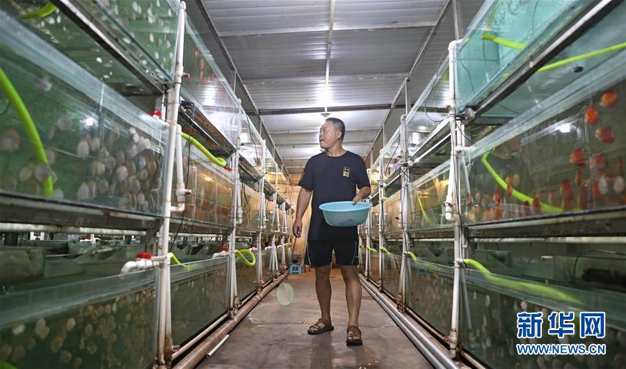 近年來,在遼寧省鞍山市寧遠街道張忠堡村,許多村民投身觀賞魚養(yǎng)殖業(yè),當?shù)夭扇 皡f(xié)會+合作社+農(nóng)戶”模式,利用鞍山三臺子觀賞魚交易中心平臺,將養(yǎng)殖的觀賞魚銷往東北三省以及河北、內(nèi)蒙古、天津等地。小小觀賞魚,如今已成為村民重要的致富手段。新華社記者姚劍鋒攝