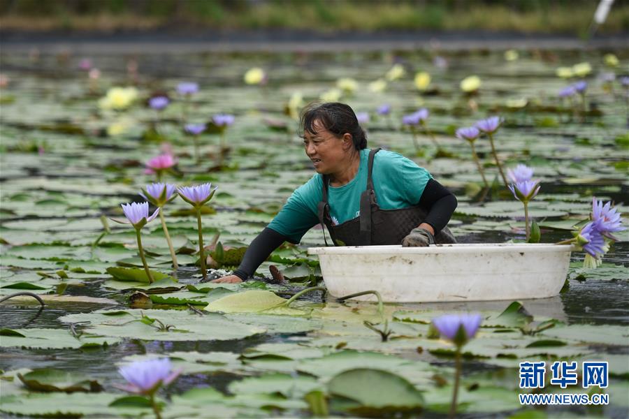 8月4日,藝溯家生態(tài)農(nóng)場工作人員在池塘采摘香水蓮花。近年來,位于浙江湖州吳興區(qū)八里店鎮(zhèn)移沿山村的藝溯家生態(tài)農(nóng)場,在約45畝的傳統(tǒng)水產(chǎn)養(yǎng)殖池塘上規(guī)?;N植香水蓮花,既凈化水質(zhì),又提高了經(jīng)濟效益。農(nóng)場還設(shè)計出種植、采摘和加工香水蓮花的工藝流程,以面向更多農(nóng)戶推廣。新華社記者黃宗治攝