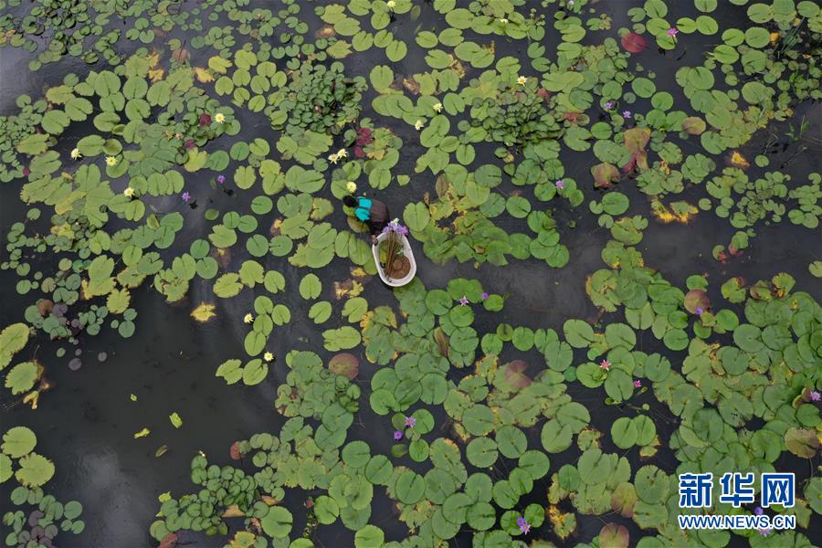 8月4日,藝溯家生態(tài)農(nóng)場(chǎng)工作人員在池塘采摘香水蓮花(無人機(jī)照片)。近年來,位于浙江湖州吳興區(qū)八里店鎮(zhèn)移沿山村的藝溯家生態(tài)農(nóng)場(chǎng),在約45畝的傳統(tǒng)水產(chǎn)養(yǎng)殖池塘上規(guī)?;N植香水蓮花,既凈化水質(zhì),又提高了經(jīng)濟(jì)效益。農(nóng)場(chǎng)還設(shè)計(jì)出種植、采摘和加工香水蓮花的工藝流程,以面向更多農(nóng)戶推廣。新華社記者黃宗治攝