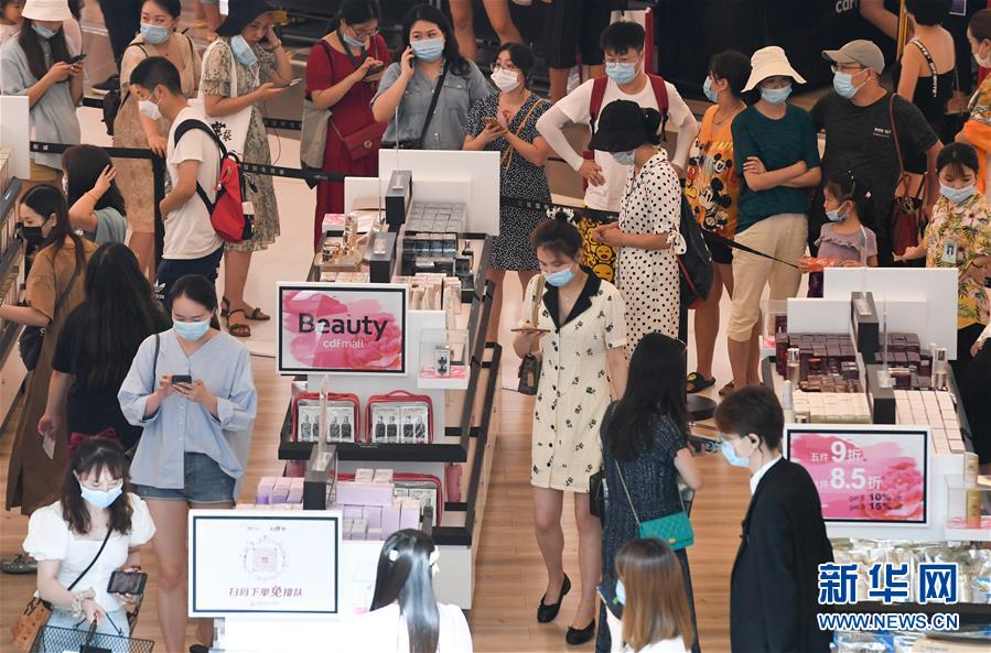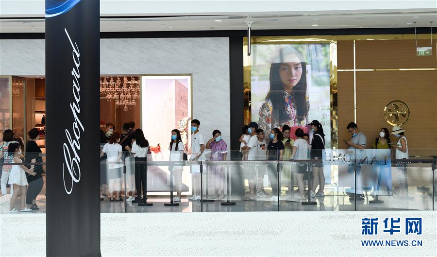 8月6日,游客在三亞國際免稅城排隊(duì)進(jìn)店。新華社記者楊冠宇攝