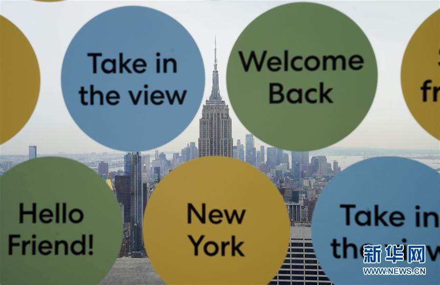 這是8月6日在美國(guó)紐約洛克菲勒中心觀景臺(tái)上拍攝的城市景觀。當(dāng)日,3月份暫時(shí)關(guān)閉的洛克菲勒中心觀景臺(tái)恢復(fù)對(duì)公眾開放。每天13時(shí)至21時(shí),人們可戴口罩前往參觀。新華社記者王迎攝
