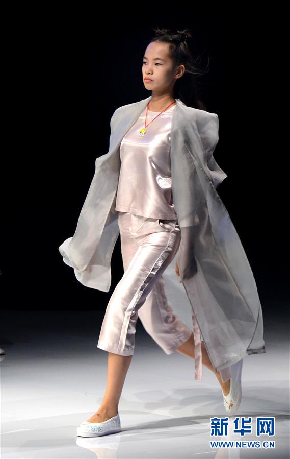 8月7日,小模特在T臺上展示童裝。當(dāng)日,2020中國(河南)國際大學(xué)生時裝周舉行童裝設(shè)計(jì)專場展示。8月5日至7日,2020中國(河南)國際大學(xué)生時裝周在河南省新密市豫發(fā)密蘭小鎮(zhèn)舉行。新華社發(fā)(海雨涵攝)