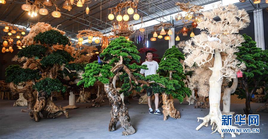 這是8月7日在永福縣永安鄉(xiāng)根雕工藝品就業(yè)扶貧車間拍攝的根雕工藝品。2017年以來,廣西桂林市永福縣永安鄉(xiāng)通過幫扶返鄉(xiāng)青年創(chuàng)業(yè)的方式,建立起根雕工藝品就業(yè)扶貧車間,組織貧困群眾進(jìn)車間務(wù)工學(xué)藝,把當(dāng)?shù)刎S富的朽木和柑橘樹根枝資源利用起來,加工成盆景、茶桌、吊燈等根雕工藝品,不僅幫助貧困群眾在家門口掌握一技之長,還讓他們?cè)诿撠氄焙髮?shí)現(xiàn)穩(wěn)定增收。新華社記者張愛林?jǐn)z