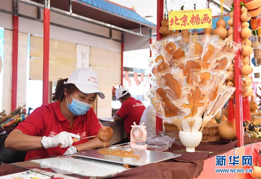 8月8日,在第十八屆中關(guān)村國際美食節(jié)美食美酒嘉年華文創(chuàng)非遺展示區(qū),工作人員制作糖畫。新華社記者 任超 攝