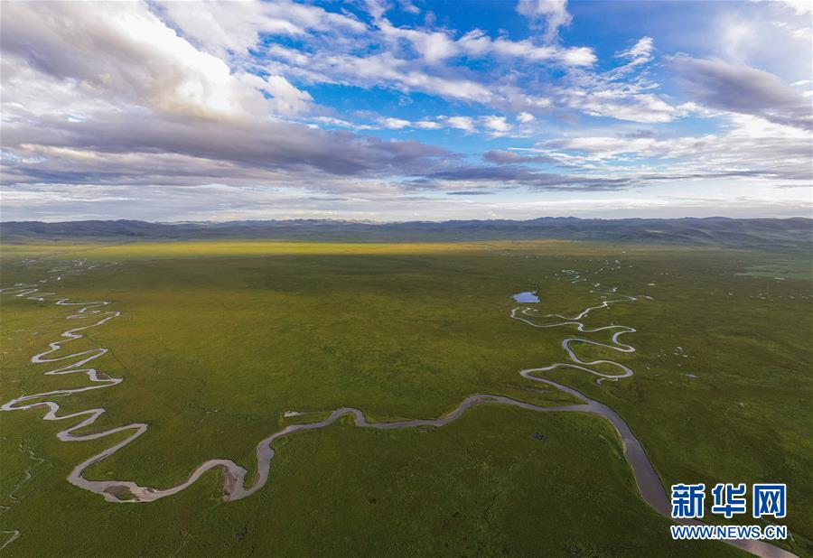 俯瞰泥拉壩濕地里彎曲的河流,該濕地泥炭富集、水系發(fā)達(dá)(8月9日攝,無(wú)人機(jī)照片)。新華社記者江宏景攝。