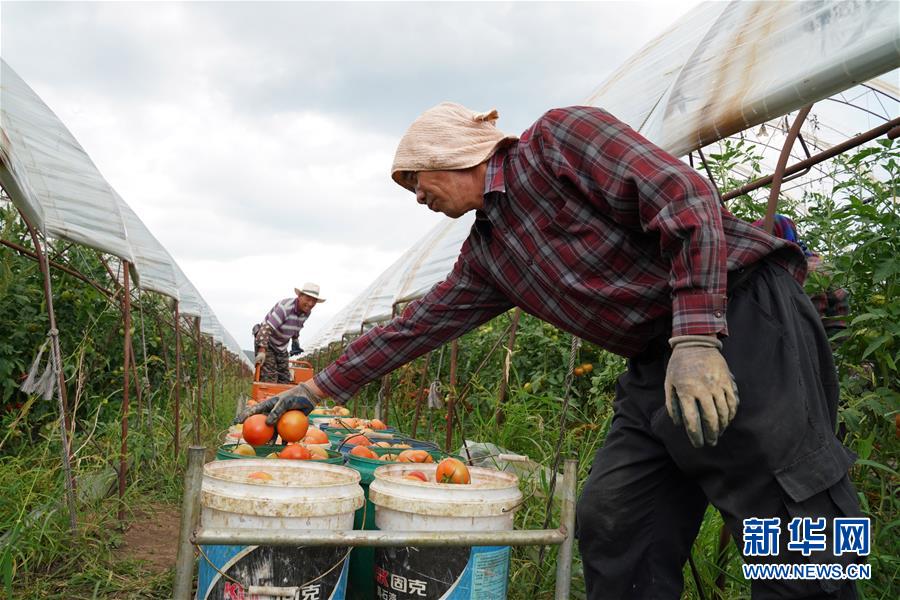 8月11日,在寧安市慶雨蔬菜專業(yè)合作社蔬菜產(chǎn)業(yè)園基地,工人把剛采摘下來的西紅柿裝入桶中準(zhǔn)備運(yùn)走。近年來,黑龍江省寧安市把設(shè)施蔬菜作為精準(zhǔn)扶貧的主導(dǎo)產(chǎn)業(yè)來抓,組織吸納貧困戶貸資加入產(chǎn)業(yè)合作社,帶動貧困戶脫貧增收。寧安市將全市500余戶貧困戶的小額信貸資金集中投放到寧安市慶雨蔬菜專業(yè)合作社,建設(shè)蔬菜產(chǎn)業(yè)園基地,在帶動貧困戶脫貧增收的同時(shí),壯大合作社蔬菜產(chǎn)業(yè)。新華社記者王建威攝。