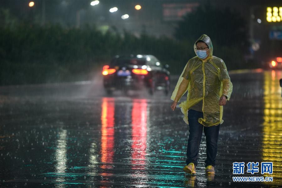 8月12日,在北京市朝陽(yáng)區(qū)一路段,行人冒雨出行。新華社記者 鞠煥宗 攝