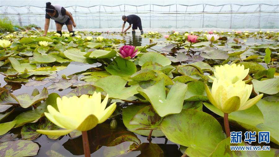 8月12日,河北省灤州市茨榆坨鎮(zhèn)草塘坨村花農(nóng)在大棚內打理種植的蓮花。近年來,河北省灤州市茨榆坨鎮(zhèn)結合市場需求,引導農(nóng)民發(fā)展玫瑰、蓮花等花卉規(guī)?;N植,通過“線上”和“線下”相結合的銷售模式,進入北京、天津等地花卉市場,在扮靚城鄉(xiāng)的同時為種植戶帶來良好收益。新華社記者 牟宇 攝