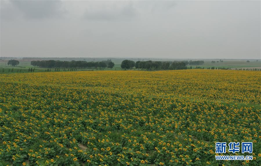 8月12日在尚義縣三工地鎮(zhèn)有德元村拍攝的旱作油葵(無人機照片)。新華社記者 楊世堯 攝