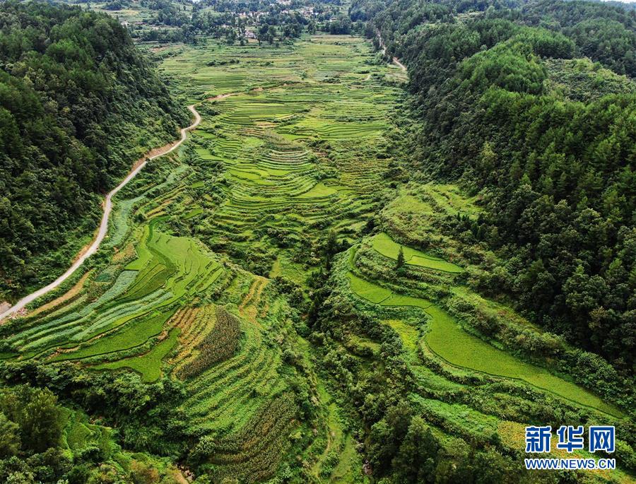 這是8月13日拍攝的鞍子鎮(zhèn)大林村梯田景色。時(shí)下,重慶市彭水苗族土家族自治縣鞍子鎮(zhèn)大林村的梯田景色迷人,構(gòu)成一幅幅山鄉(xiāng)田園美景。新華社記者王全超攝