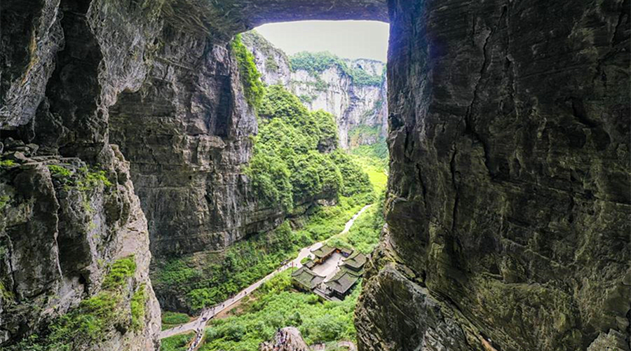 夏日時節(jié),世界自然遺產(chǎn)地重慶武隆天生三橋景區(qū)風景如畫,氣勢磅礴的天生石橋和綠意盎然的山林相映成趣,吸引眾多游客前來觀光。