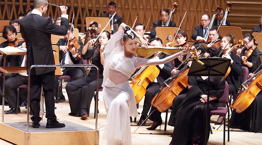 7月29日晚,演員在2020上海夏季音樂節(jié)閉幕音樂會上表演。閉幕音樂會上演出了作曲家譚盾創(chuàng)作并指揮的《敦煌·慈悲頌》。