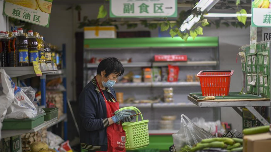 7月30日,在烏魯木齊經(jīng)濟技術開發(fā)區(qū)(頭屯河區(qū))天鵝湖社區(qū)一家超市,商販按照住戶的訂單配送果蔬。