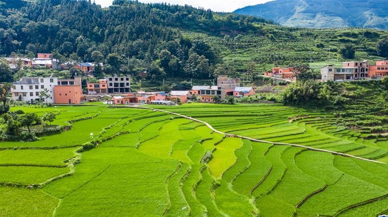 夏日時節(jié),貴州省盤州市新民鎮(zhèn)的梯田風景如畫。