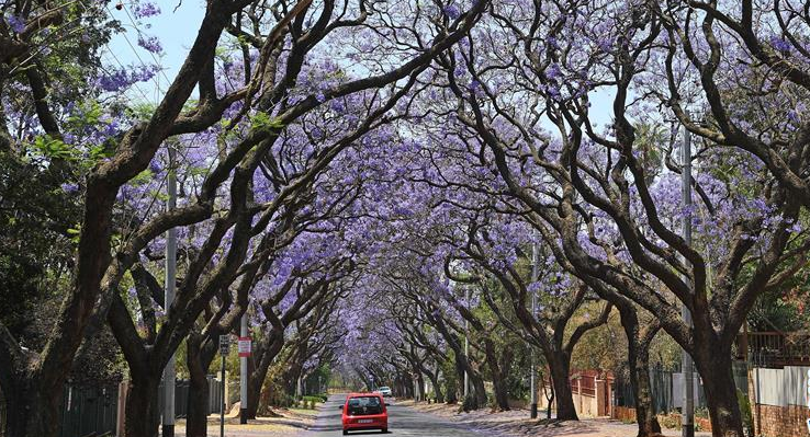 每年十月,種植有數(shù)萬株藍(lán)花楹樹的比勒陀利亞都會成為一片紫色的海洋,故有“藍(lán)花楹之城”美譽(yù)。