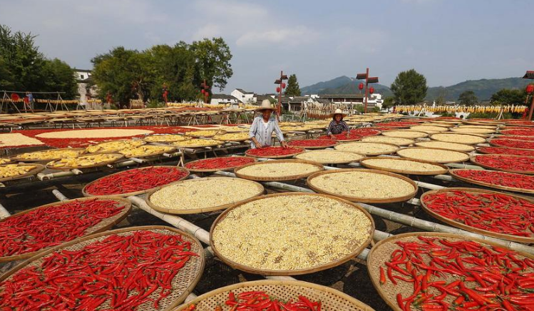呈坎古村曬秋忙